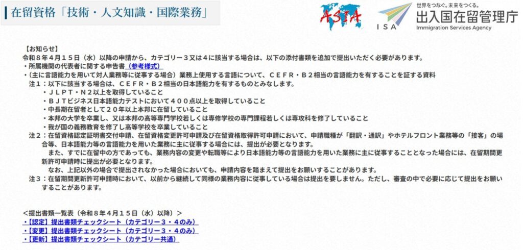 Theo thông báo từ Cục Xuất Nhập Cảnh Nhật Bản, kể từ 15/04/2026, các hồ sơ thuộc nhóm doanh nghiệp loại 3 và loại 4 (doanh nghiệp quy mô nhỏ) và công việc có sử dụng tiếng Nhật trong giao tiếp (ví dụ: biên – phiên dịch, sales, marketing, dịch vụ khách hàng…, sẽ phải bổ sung chứng minh năng lực tiếng Nhật tương đương CEFR B2 – tương đương trình độ JLPT N2 trở lên.